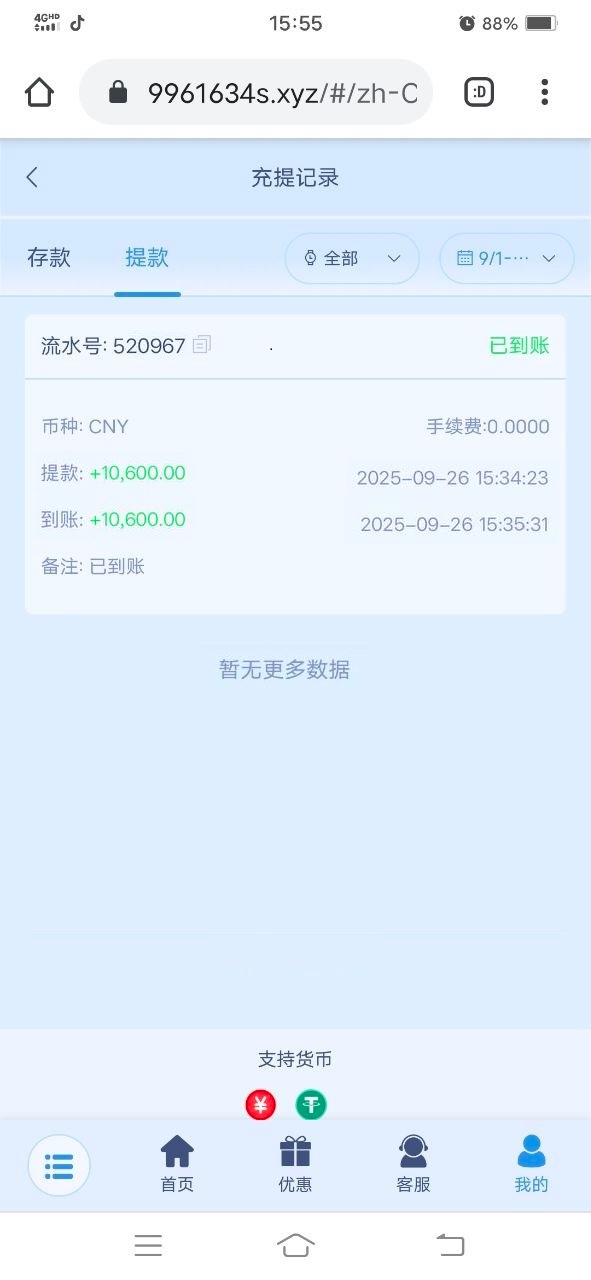 安稳 lxa520999这是你吧,今天充了100提了300,不是到了?