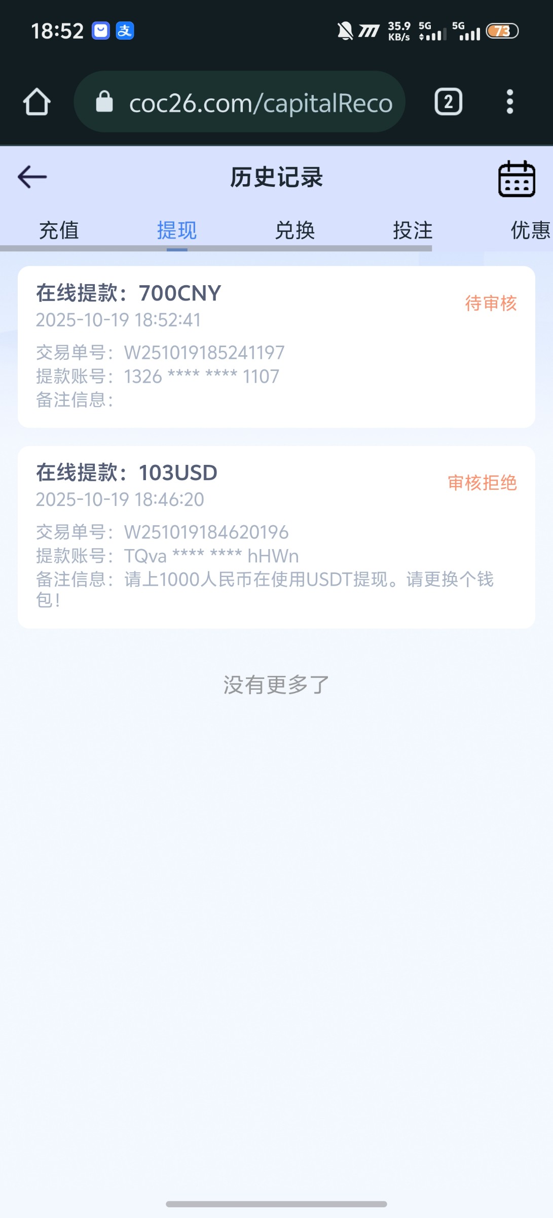 充值支持:微信 支付宝 银行卡 虚拟钱包 USDT 数字人民币